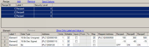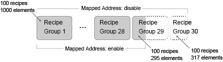 2. When mapped addresses are used for all elements, you can create up to 28 recipe groups with 100 recipes and 1000 elements, and 1 recipe group with 100 recipes and 295 elements.
