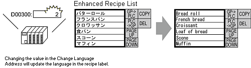 To change the display language, change the value in the [Switching Control Address], available from the [Text Table] screen's [Language Change] dialog box.