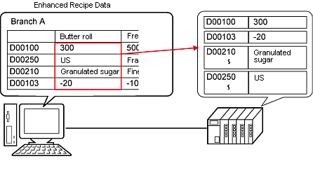 Create enhanced recipe data (recipes in binary format) on GP-Pro EX and transfer to the device/PLC.