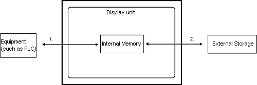 You can directly transfer enhanced recipe data between the display unit and the device/PLC without storing data in backup memory (SRAM).