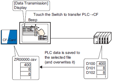 Or, you can overwrite the selected files on the external storage device with device/PLC data.