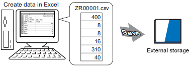 Select "CSV" for the file. Set the file name to "ZR*****.csv", where ***** is a 5-digit file number from 00000 to 65535.