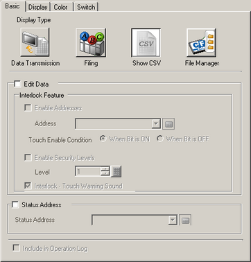 When [Edit Data] is designated, select whether to use an address and a security level for the settings of the Interlock feature (enables touch only when a condition is satisfied).