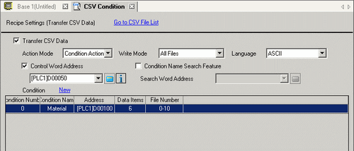 In [Condition], click [New]. The [CSV Data Transfer Condition] dialog box appears.