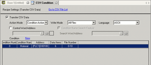 In [Condition], click [New]. The [CSV Data Transfer Condition] dialog box appears.