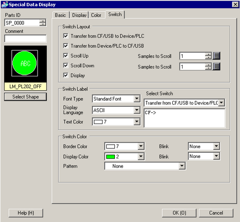 The Special Data Display Part [Data Transmission] is now configured. You can move the switches to the appropriate locations.