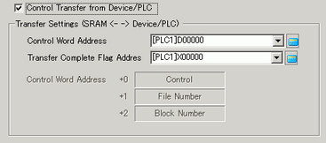 When the designated [Control Word Address] bit 0 turns ON and filing data is correctly transferred, the [Transfer Complete Flag Address] turns ON. After confirming completion, turn OFF this address.