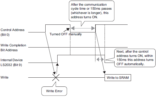 This address is not turned OFF automatically. After the [Write Completion Bit Address] turns ON, turn OFF bit 0.