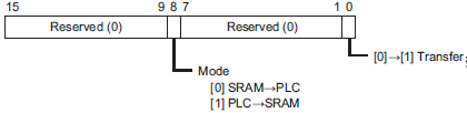 Set the bit address that verifies that the data transfer between backup memory (SRAM) and the PLC is complete. When the transfer completes successfully, this bit turns ON. After confirming completion of the transfer, turn OFF this address.