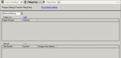 If [Enable Multiple Folders] is selected from the [Common Settings (R)] menu's [Recipe (R)] - [Transfer Filing Data (Mode) (A)], the [Folder List] displays.