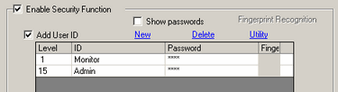 Register user IDs and passwords for each security level, then the security level for each display screen.