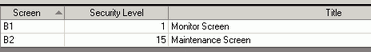 For the monitor screen (Screen: B1) set a [Security Level] of 1, and for the maintenance screen (Screen: B2) set a [Security Level] of 15.