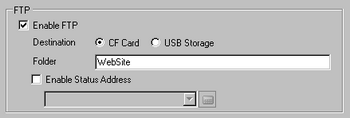 When using the FTP feature during data transfer, enable to write information to a specified status address. When this check box is selected, you can set up a status address.