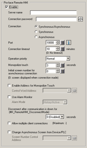 Select when the Pro-face Remote HMI [Enable] check box is selected, and the [Connection] is set to either [Synchronous/Asynchronous] or [Asynchronous].