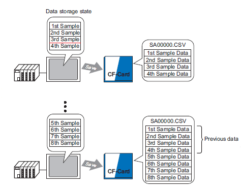 Save data from Sampling Group1 as file name "SA00000.csv" in the CF Card.