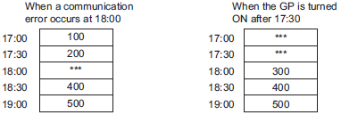 If the [Sampling Cycle] is shorter than the communication cycle time, or if the communication cycle time becomes longer due to a screen change/scroll display and exceeds the [Sampling Cycle], in order to perform the sampling before the device/PLC data is read, the previous data will remain displayed.