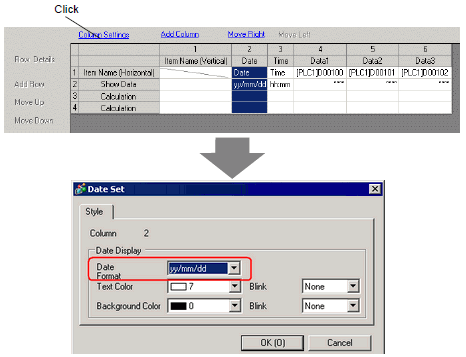 4. Select the Date column in the Preview area and click [Detail Settings]. The [Date Set] dialog box appears. Change the date form to [mm/dd].