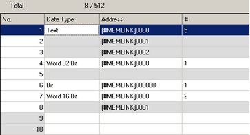 If you want to use sequential addresses of the same data type, enter the number of words you want to use in [#]. If the [Data Type] is [Text], enter the number of characters in [#].
