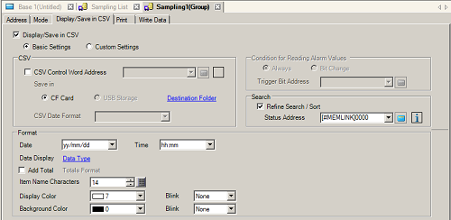 Open the [Display/Save in CSV] tab. Select the [Display/Save in CSV] check box, and click [Custom Settings].