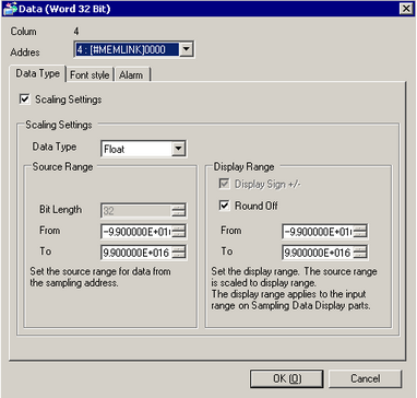 Select the [Data 4] column and click [Column Details]. The [Data] dialog box appears. Change the data type to [Float]. Set [Total Display Digits], [Font Color] and others in the [Style] tab as necessary, and click [OK] to close the dialog box.