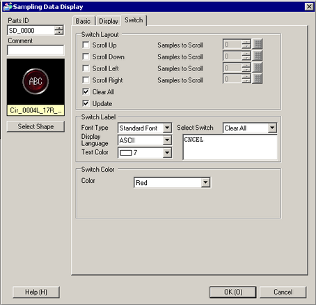 For the attached [Sampling Data Display] switches, you cannot set the shape or color independently. To set a different shape or color for each switch, use the Switch Lamp's [Special Switch], set up with the [Sampling Data Display Switch] action.