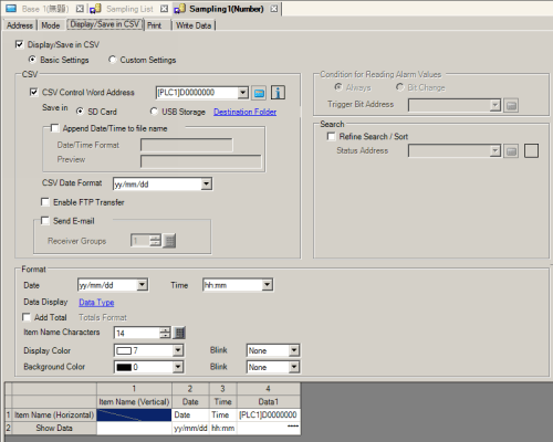 Specifies whether to save as a CSV file. If so, set the control address to write the data to an external storage.
