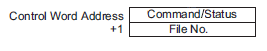 Two sequential word addresses are used as the area to write the command and its result (status), and File (the *****portion in "SA*****.csv".) The file number can be from 0 to 65535.