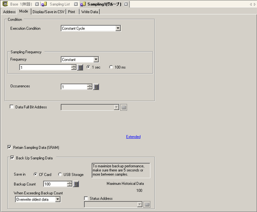 When [Frequency]=[Constant], specify the sampling frequency at [1sec] (one second) or [100ms] (one hundred milliseconds).