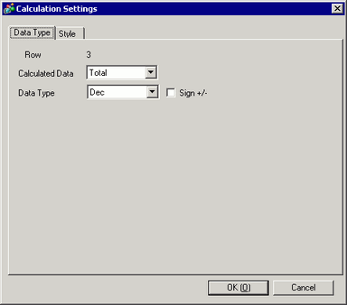 If the [Number of Calculation Display Rows] in [Block Print] is not zero, select the Calculation row or Data column Calculation cell, and click [Detail Settings]. The following dialog box appears.