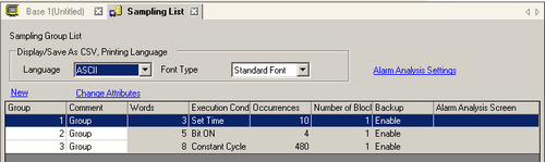 If you select and double-click a line other than [Group Number] and [Comment], that sampling group's setting screen opens.