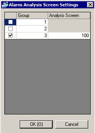 Select the groups for which you want to configure alarm analysis, and specify screen numbers in the [Analysis Screen] column.