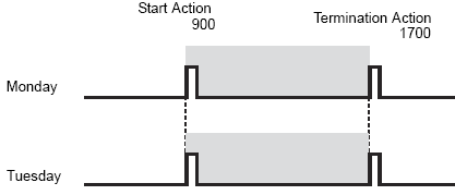 A schedule for 1 day or less (Start and End times are within 24 hours) can be entered. Multiple Start and End days can be selected. You can perform actions at the same time on multiple days.
