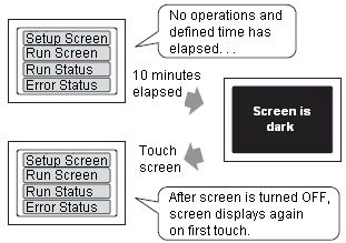 Turns OFF the screen display if no interaction occurs for a period of time.