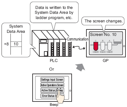You can change screens either from a Change Screen Switch or the device/PLC.