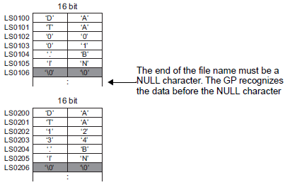 An Internal Device can be specified for the second and third parameters (File names). Specifying Internal Device allows indirect addressing of a file name. Also, when specifying parameter 2 internal devices, the maximum folder name + file name length is 14 single-byte characters.