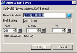 In the above example, write "1970-01-01" to DATE type device "[w:[PLC1]TagName]".