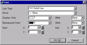 Draws a line at the designated position. Set the line type, color attributes, and start and end coordinates.
