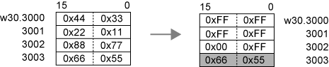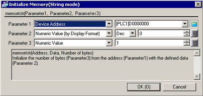 For example, memcpystr([w:[PLC1]W30.3000], 0xFF, 5)