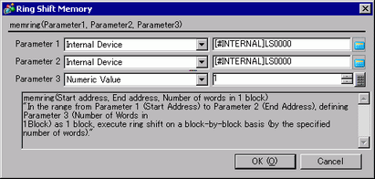 Performs ring-shift between the start and end addresses in block units (in specified word units). When an error occurs, the error status is written to LS9150.