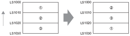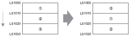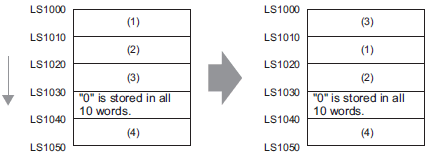 Data moves downward in 10-word block units, only within the range, from the starting block to the Data 0 block. If data exists after the block with "0" data, the data is ignored.