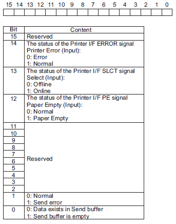 The status variable (PRN_STAT) is used in order to check for the presence/absence of data in the Send Buffer and to get the Error Status. This status variable is write-only.