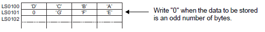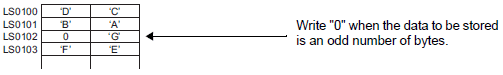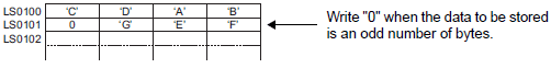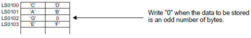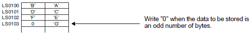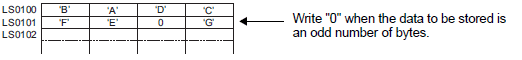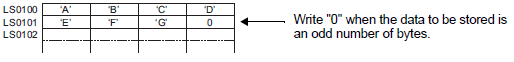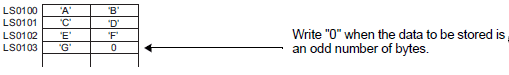 In the example above, the data stored in LS1000 and later areas are output from the COM port. The number of bytes is that same as that written in the Temporary address [t:0010].