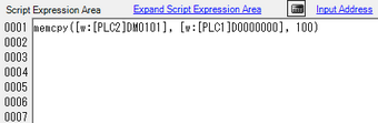 Create a script that detects the rising edge (0 to 1) of bit address M0100 and copies data stored in the connected device (PLC1) to another connected device (PLC2).