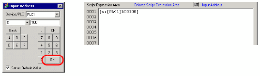 Input D00100, and click [ENT]. Click [OK] in the [Address Input] dialog box.