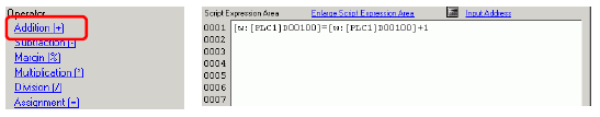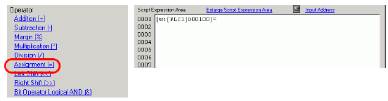 Click the [Tool Box] tab. Click [Assignment (=)] to enter the [Script Expression Area].