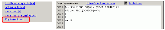 Following the if statement, create the conditional expression inside the brackets "( )". The conditional expression compares the value stored in D00100 to "3", and turns true if they are equal.