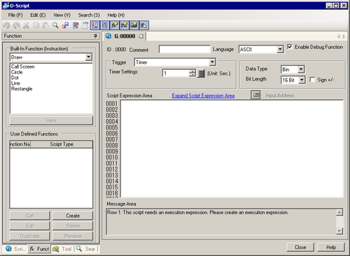 Create the first line of script. If you specify the D00100 default value as 0, the first line operation is a count operation that increases and stores the count every time a process completes.