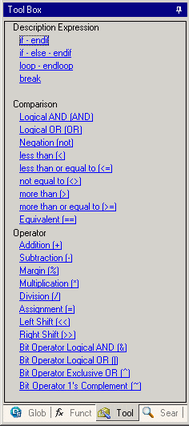 As a shortcut, select commands from the Toolbox to insert them in the script.