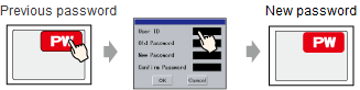 You can change the password by touching the special switch set up in the [Password Settings (Screen Input)] to display the password change screen.