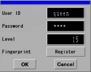 You can login at the set security level when the fingerprint registered in the display unit password settings matches the fingerprint registered in the EZ fingerprint recognition unit database.